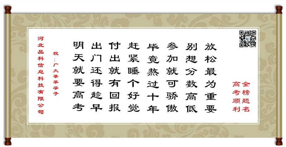 奮斗在高考一線,埋頭在書本之間,實力在清華上限,底線在北大保研,只要你能堅定信念,金榜題名只在彈指之間,河北品科信息科技有限公司祝:廣大莘莘學子今年高考,蟾宮折桂,金榜題名!!!